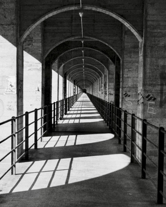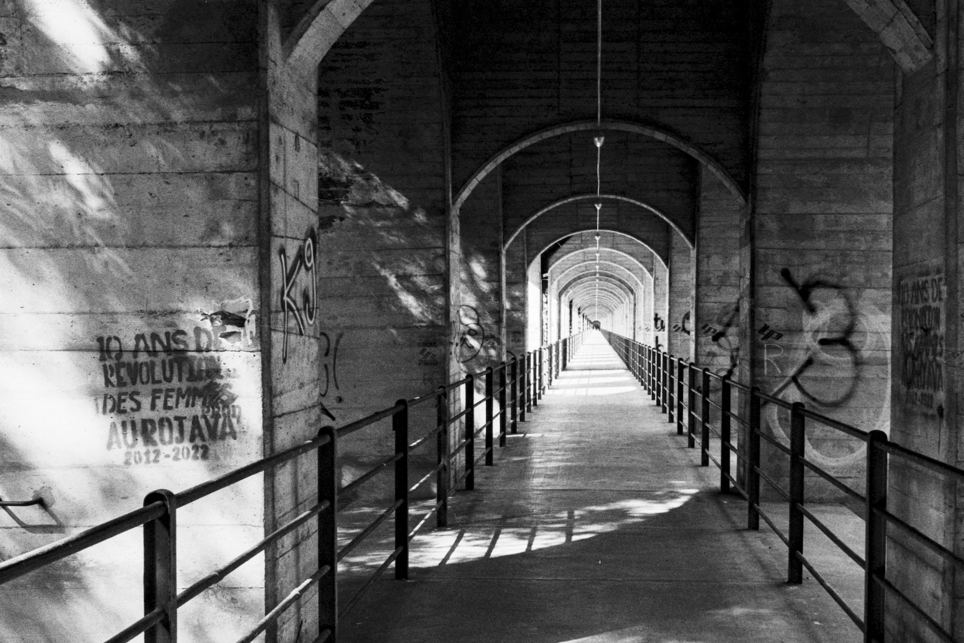 The Grandfey Viaduct is located on the Bern–Fribourg railway line and crosses the linguistic border between Romandy and German-speaking Switzerland (the Röstigraben). The current Grandfey Viaduct was constructed between 1925 and 1927 by the Swiss Federal Railways (SBB). Below the railway tracks, and over the top of its six 80-metre-high concrete arches, runs a pedestrian walkway. The bridge has been identified as a ‘suicide hotspot’ in Switzerland.